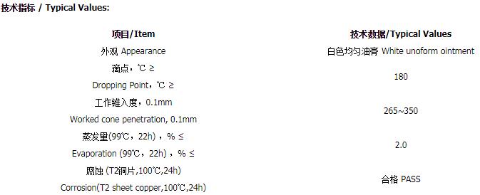 2) 優(yōu)良的抗水性和良好的潤滑性。
